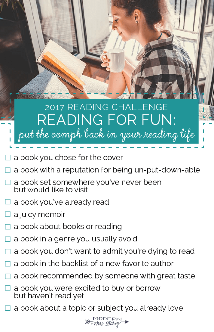 Taken from the Modern Mrs Darcy website I took up the following challenge for 2017 and here is my completed list: