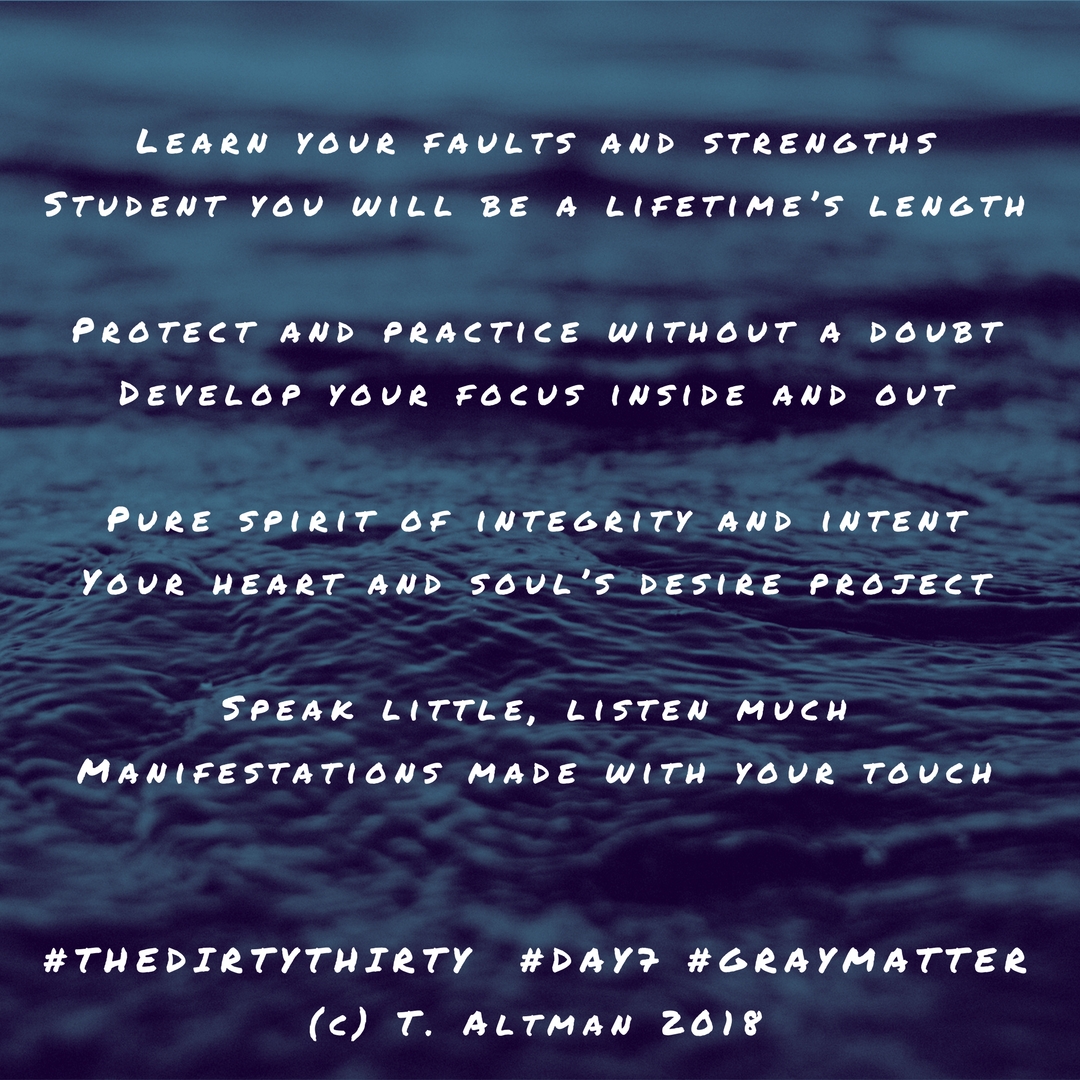 Poem: Gray Matter (The Dirty Thirty: Day 7) April 16, 2018 ~ tinaaltman Share this: Click to share on X (Opens in new window) X Click to share on Facebook (Opens in new window) Facebook Like Loading... Related
