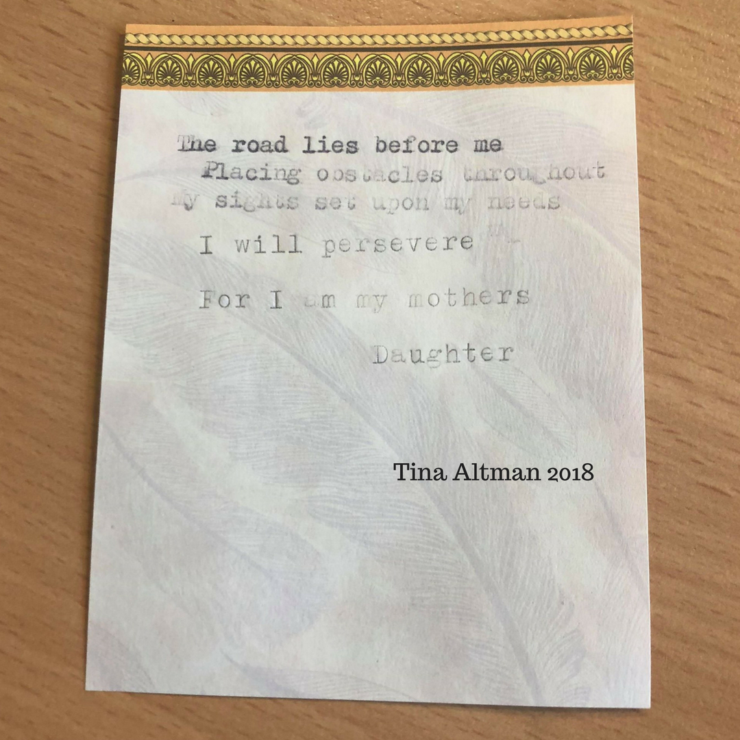 Poem: Sights June 26, 2018 ~ tinaaltman Share this: Click to share on X (Opens in new window) X Click to share on Facebook (Opens in new window) Facebook Like Loading... Related