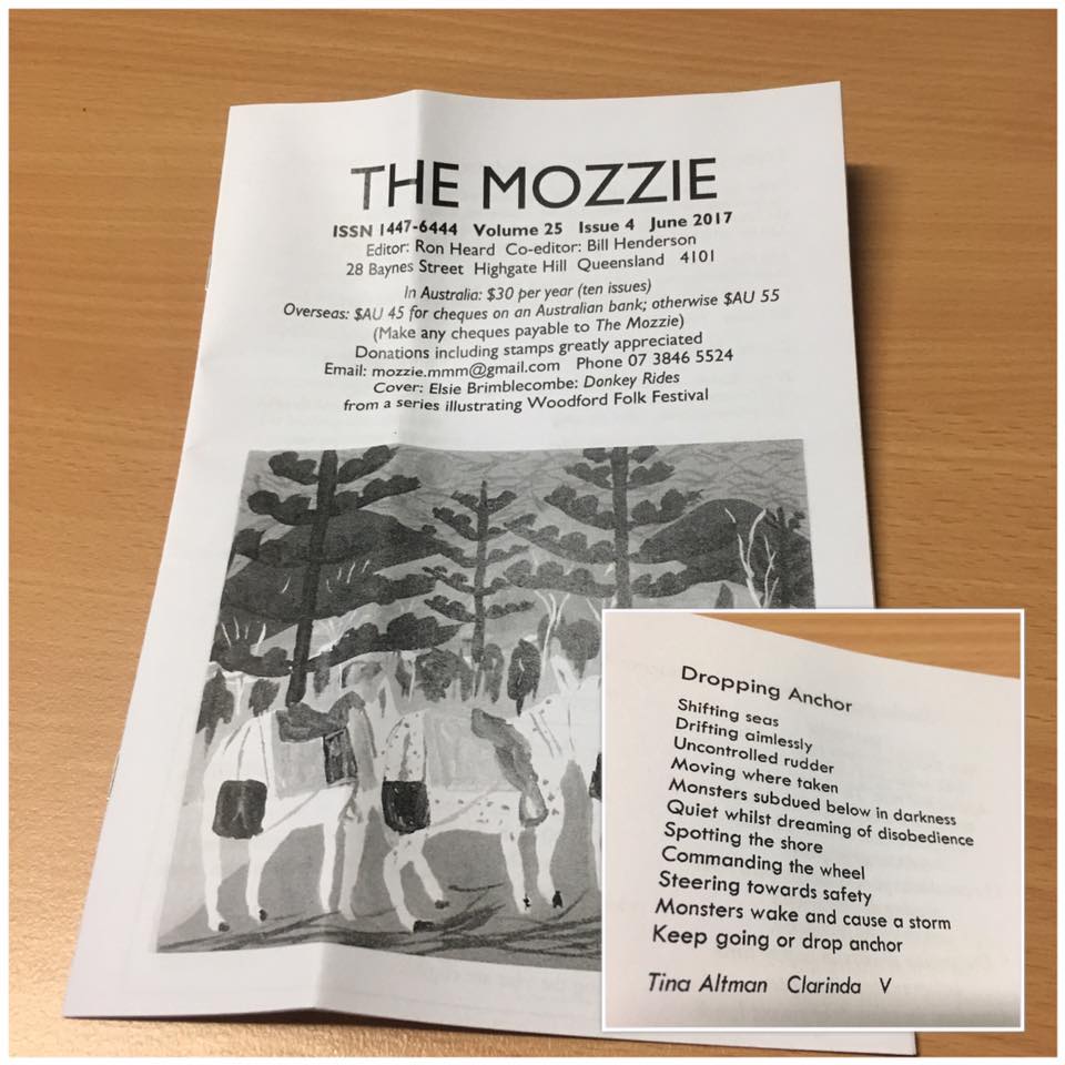 “Dropping Anchor” has been featured in June’s Issue of The Mozzie an Australian poetry zine (Volume 25, Issue 4, June 2017).